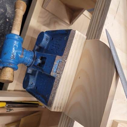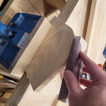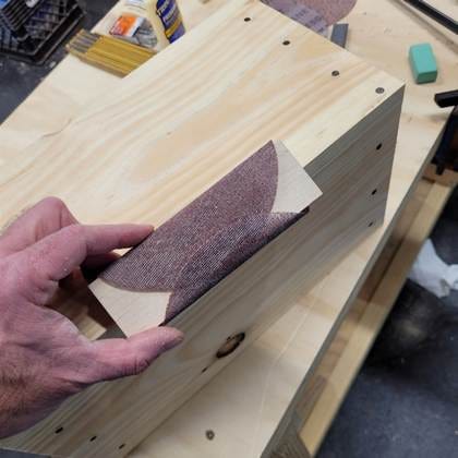 I use a rasp and then sandpaper to clean up the edge of the side support pieces. Don’t forget that the rasp is directional.
