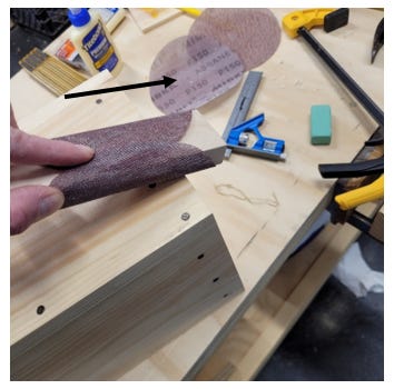 When we sand the edges of our projects, sand with the grain. The block of wood helps to do this.