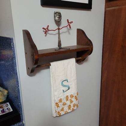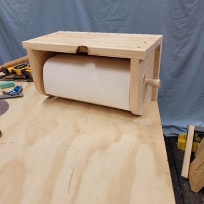 I’m going to show the steps that I took to build a paper towel holder/shelf, loosely following both sets of plans, and showcase some of my students’ work to help you get an idea for your shelf.