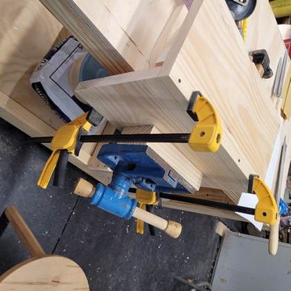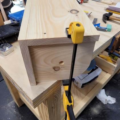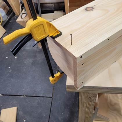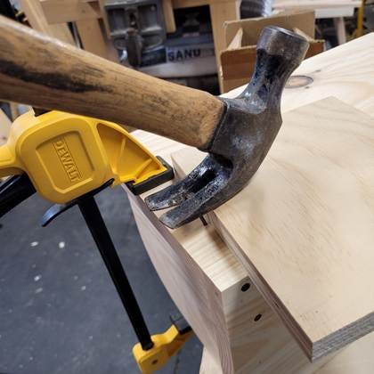When I’m working by myself, clamps come in handy to hold the pieces while I’m nailing.