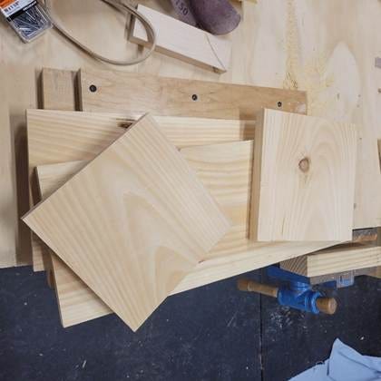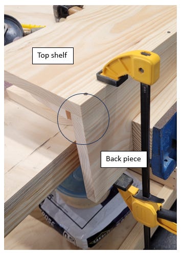 Notice how I’ve constructed the pieces. The top shelf is ON TOP OF the back piece to give it strength. Every so often, I’ll have students switch this orientation of the boards.