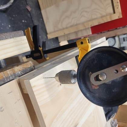Then, I drill (only) some nail holes on the top piece. I use a ¹⁄₁₆” bit for this.