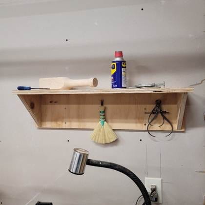 The first question before building a shelf is what do you want it to hold? Trophies… Legos… hats… books… towels… measurements will need to be taken so you’ll know that your stuff will fit on it. These plans also discuss making it a paper towel holder.